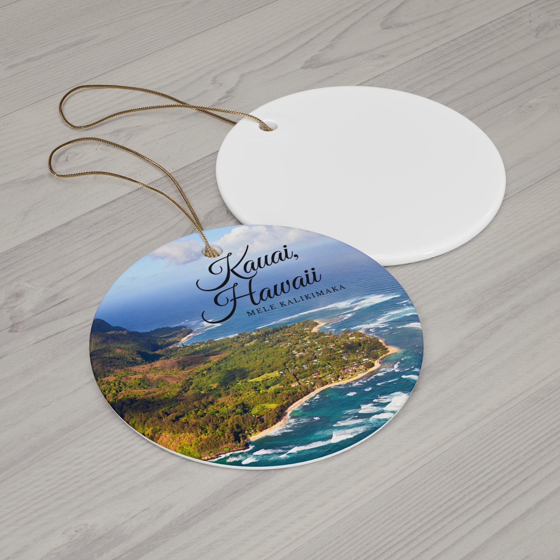 Kauai Hawaii Mêle Kalikimaka Merry Christmas Holiday Keepsake Ceramic Ornament