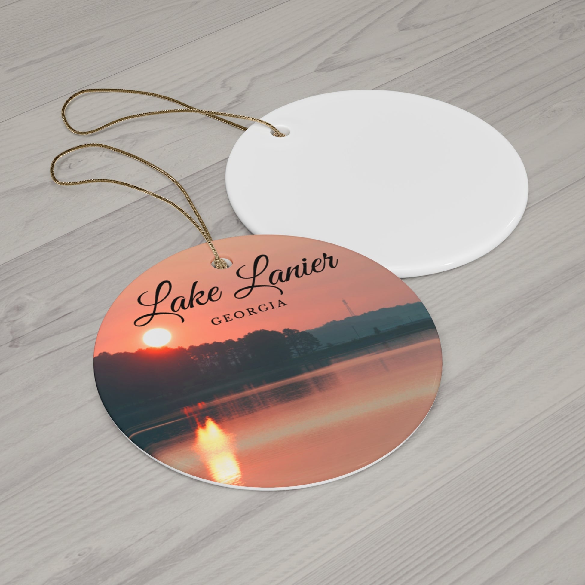 Lake Lanier Georgia Christmas Holiday Circle Ceramic Ornament