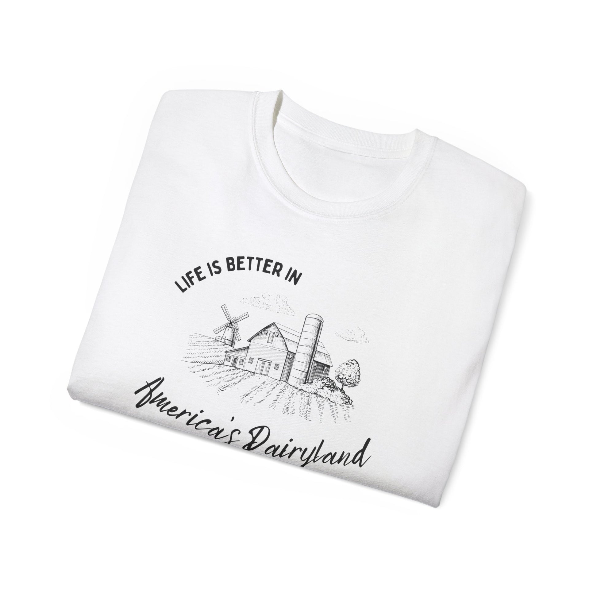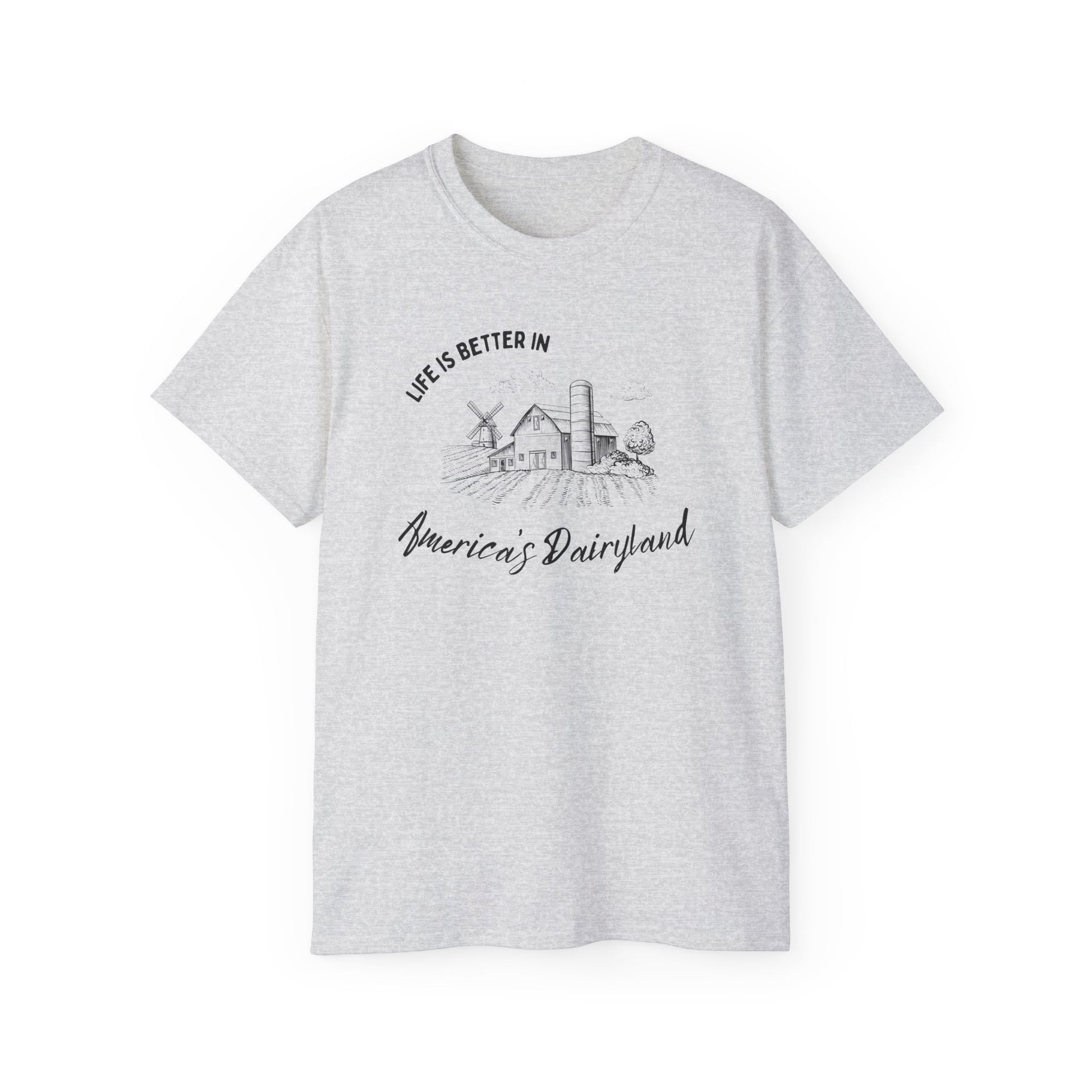 Life is Better in America's Dairyland Wisconsin Midwest Short Sleeve Shirt Unisex Ultra Cotton Tee