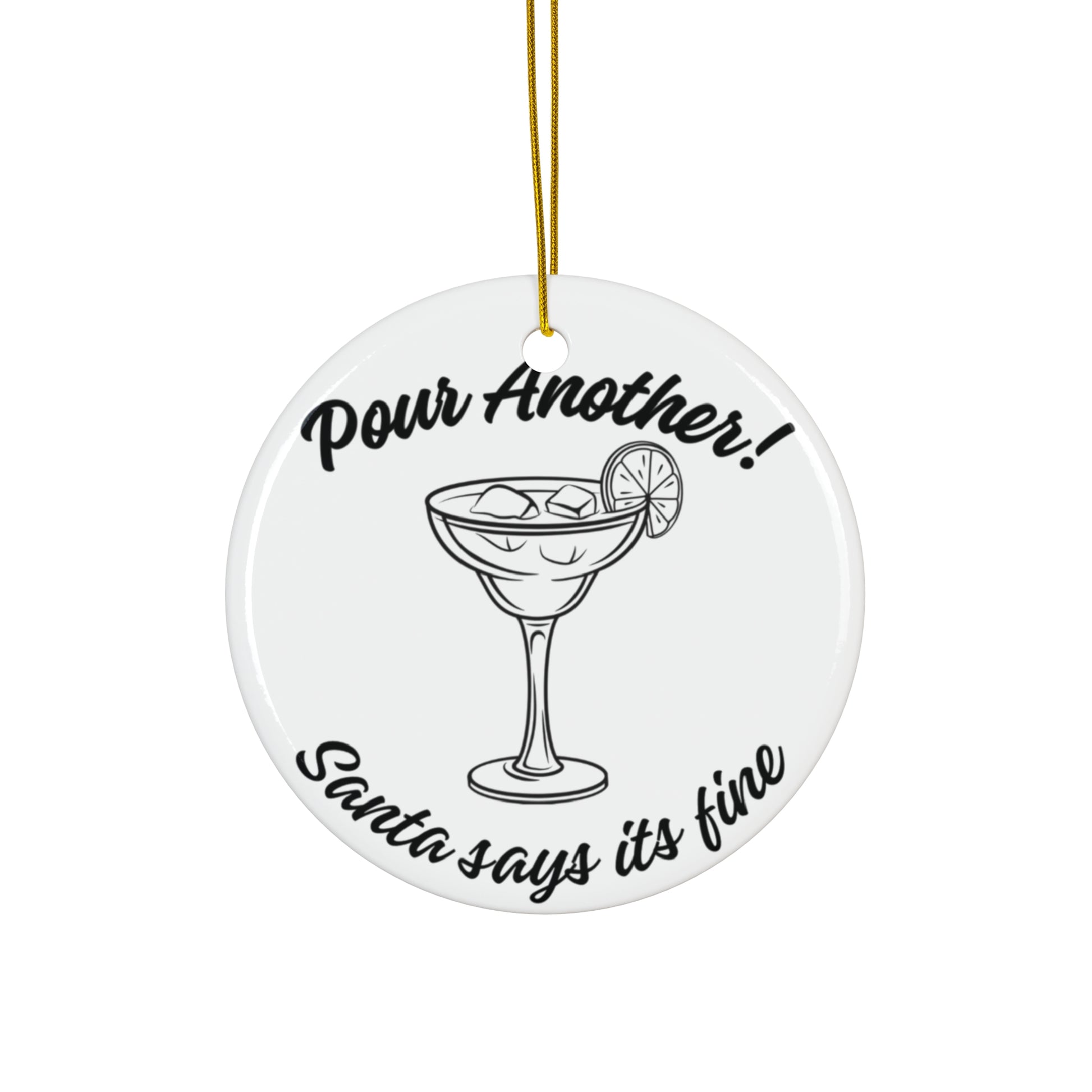 Pour Another Santa Says Its Fine Holiday Christmas Tree Ceramic Ornament White Black Round Alcohol Cocktail